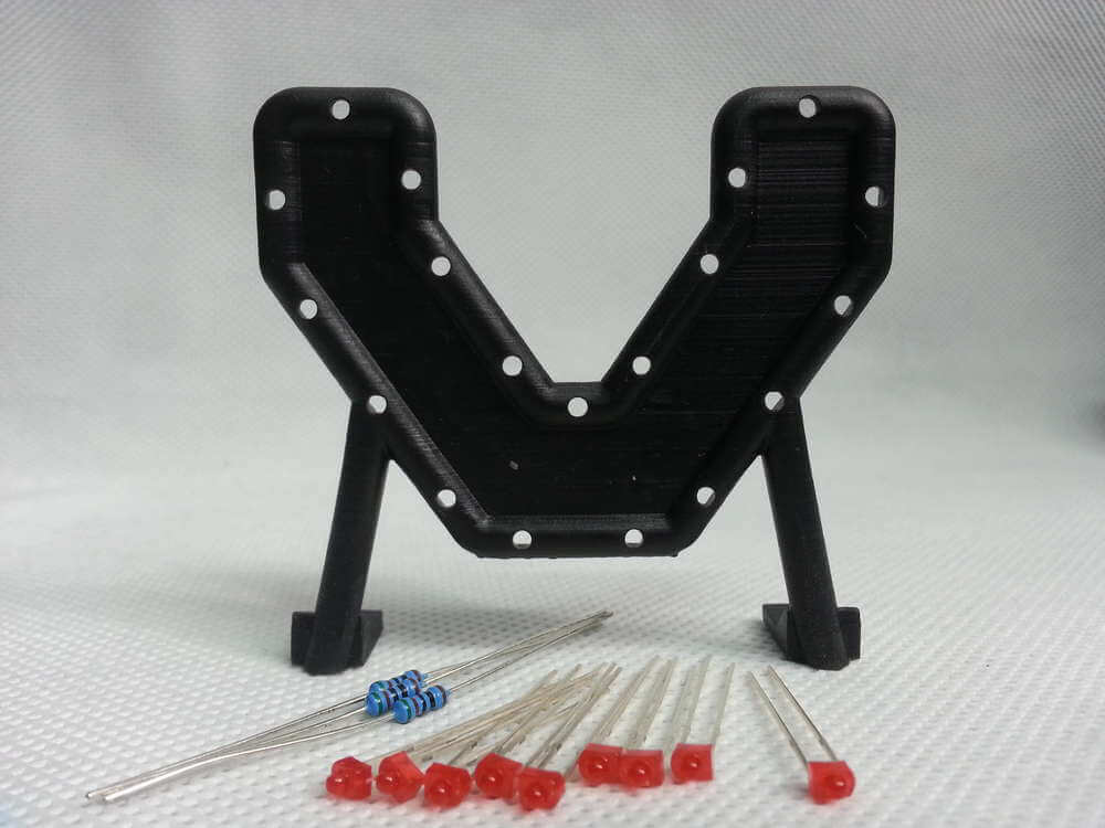 AirBar V mit 19 LEDs für Tamiya Modelle, mit 19 roten LEDs und Vorwiederständen 3D-Druck, ABS, weiss. Maße: 66x61mx14mm