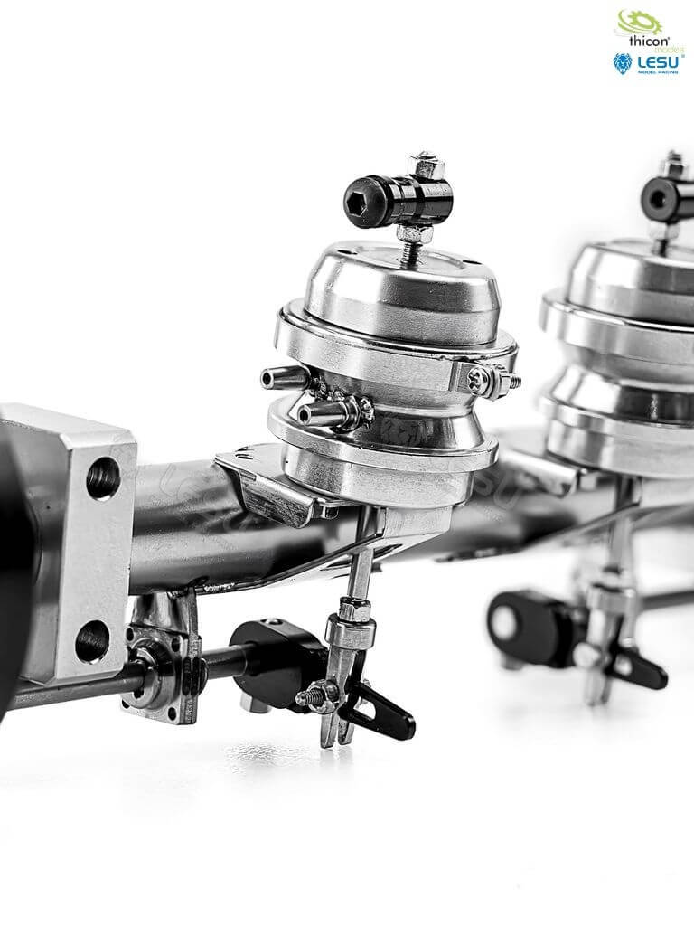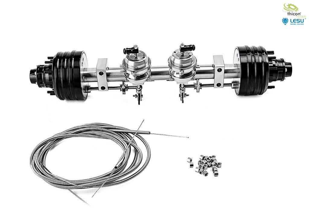 Aufliegerachse mit Bremsfunktion für Tamiya-Maßstab. Bremse mit optionalem Servo betätigbar.