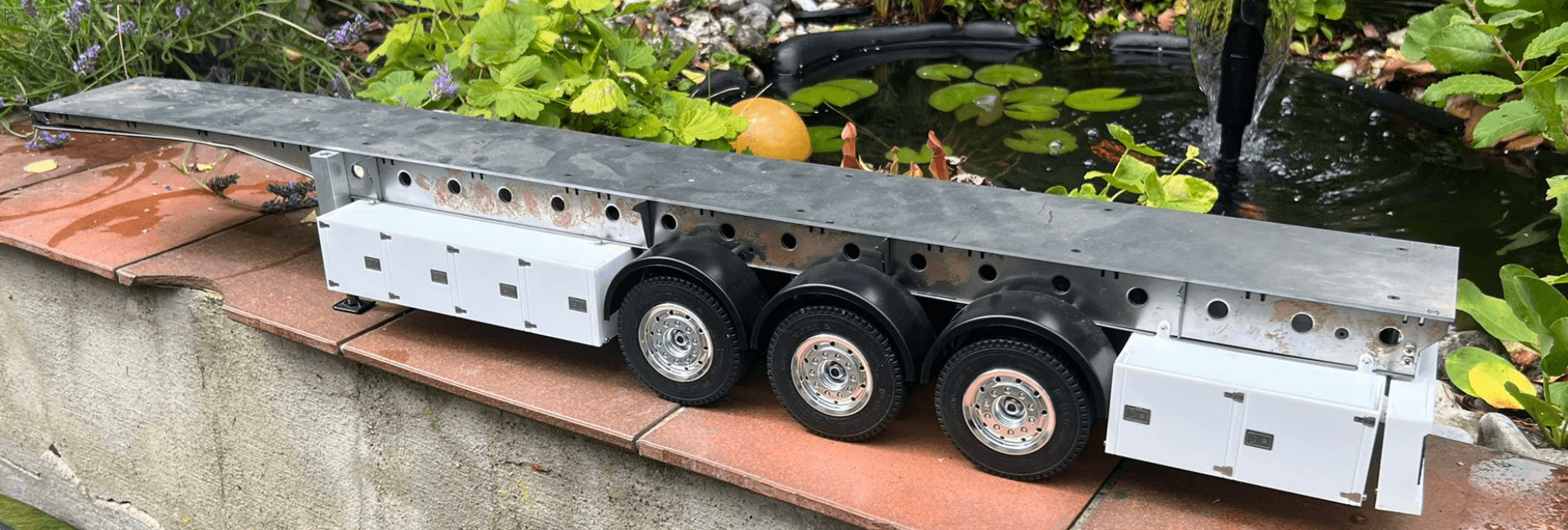 - 3-Achs Aufliegerfahrgestell Ver. III, 3-Achs-Rungenauflieger Ver. III, 3-Achs-Flachbettauflieger Ver. III, 3-Achs Baustoffauflieger Ver. III, 3-Achs-Kofferauflieger weiß Ver. III