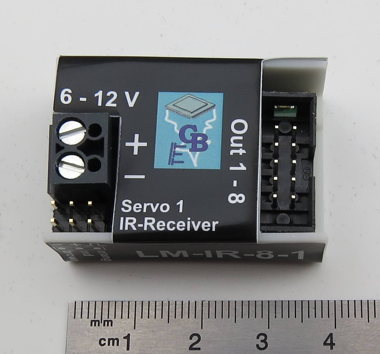 Das LM-IR-8-1 besitzt 8 Schaltausgänge für z.B. Lampen und LEDs. Die 8 Ausgänge sind dabei eine Kopie der 8 Schaltausgänge des Hauptmoduls.