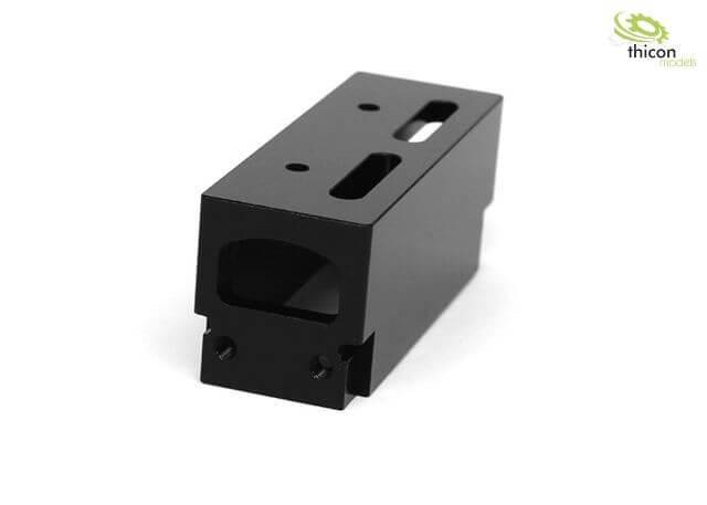 Traverse vorne Alu schwarz für TAMIYA Arocs. Länge 58mm, Tiefe 22mm, Höhe 15mm